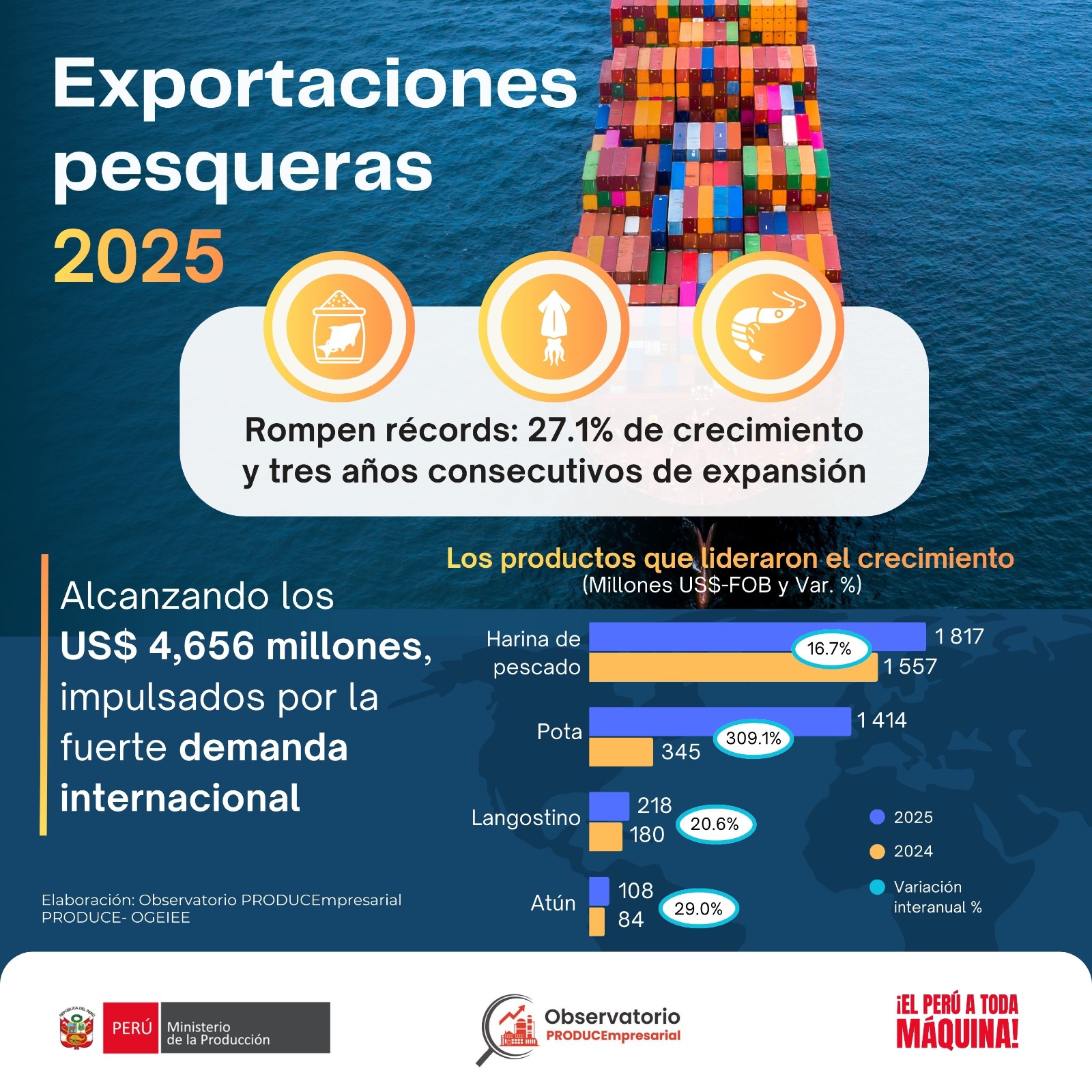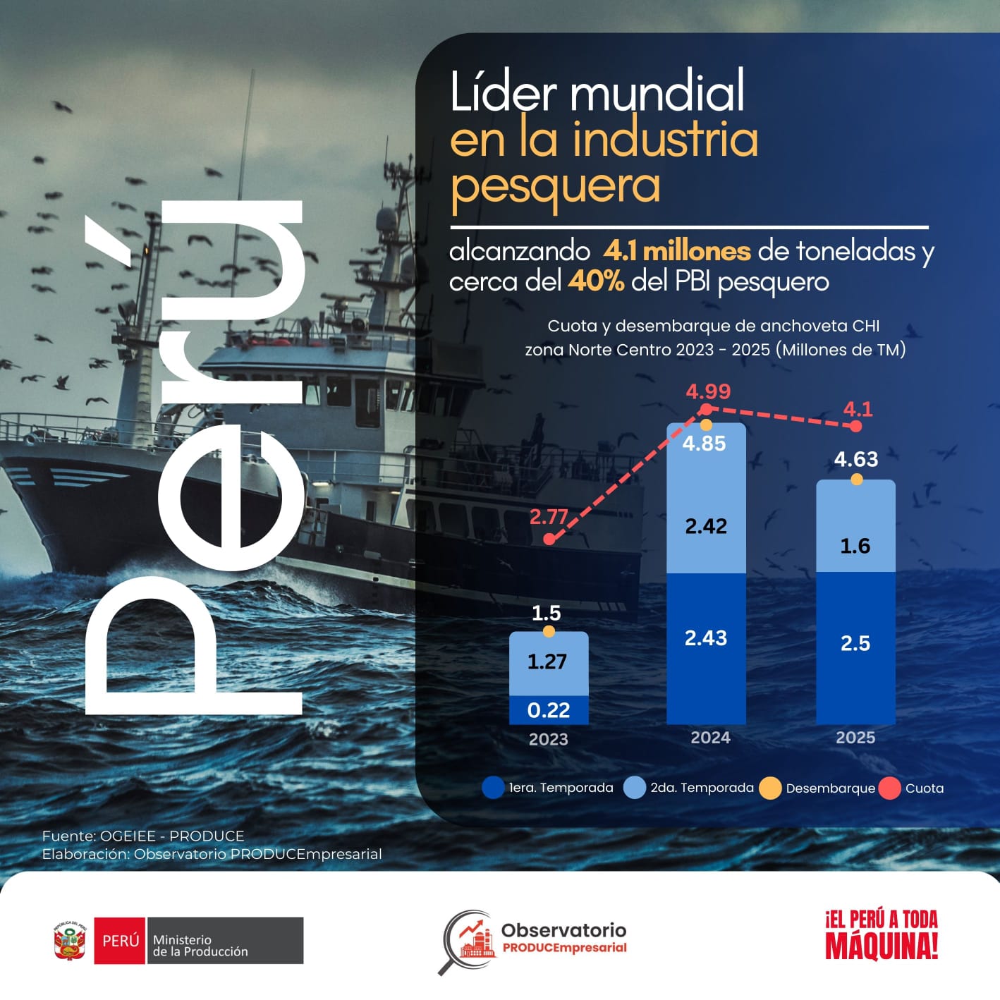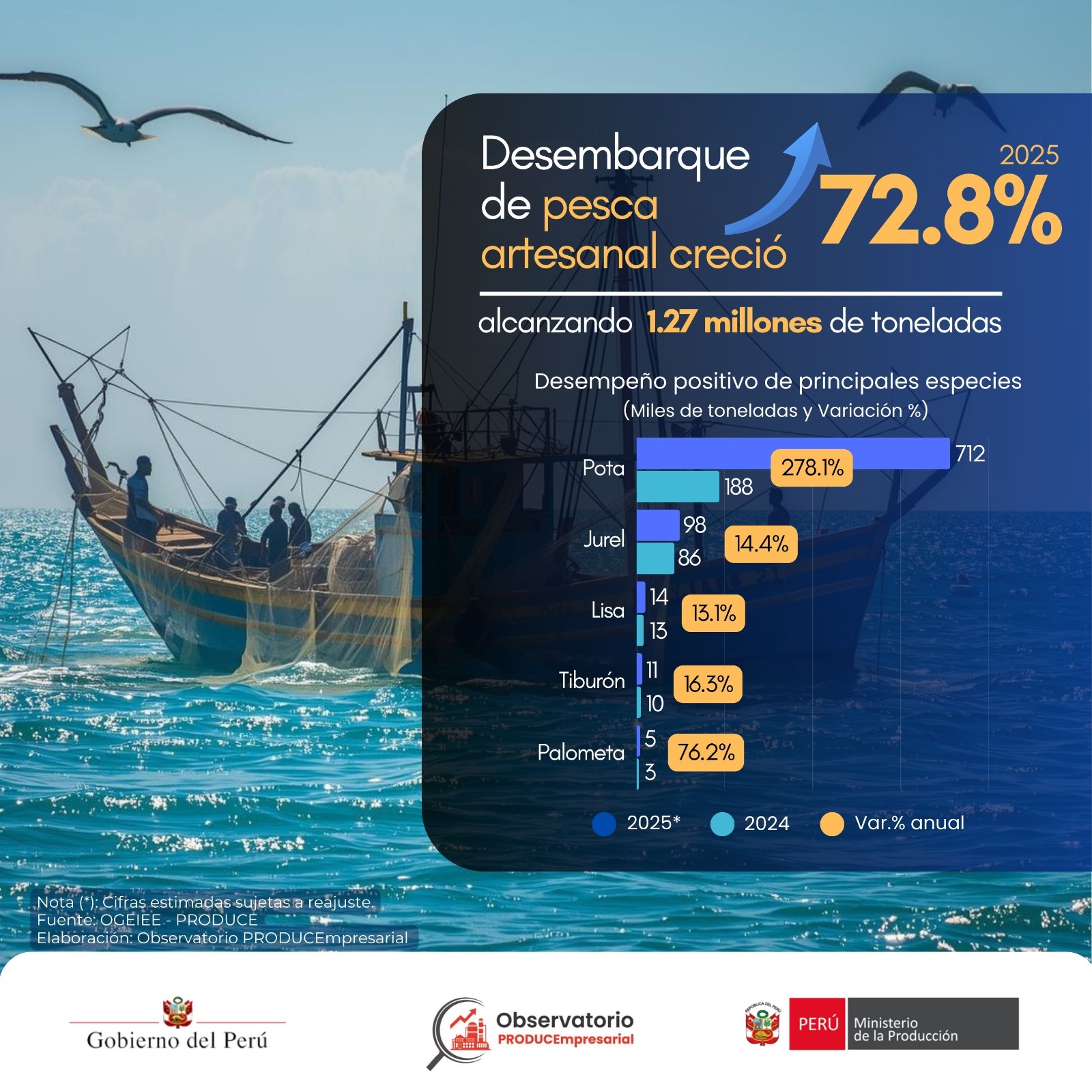0.3% cayó el precio del bonito (5.2 soles x kg). En octubre del 2025, este recurso registró el volumen más alto en los últimos tres años (8,696 toneladas).