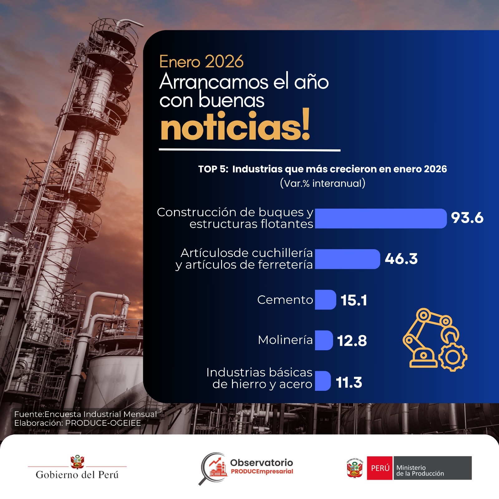 En enero del 2026, el PBI manufacturero experimentó una ligera caída de 1.4% respecto a enero de 2025, debido principalmente a la disminución de la manufactura no primaria (-2.2%). En contraste, este resultado fue parcialmente atenuado por un ligero crecimiento de la manufactura primaria (+0.4%), impulsado por una mayor disponibilidad de materia prima para la industria de metales primarios.