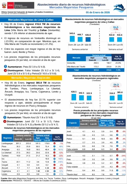 Reporte: Abastecimiento diario de recursos hidrobiológicos. Mercados mayoristas pesqueros 05-01-2025