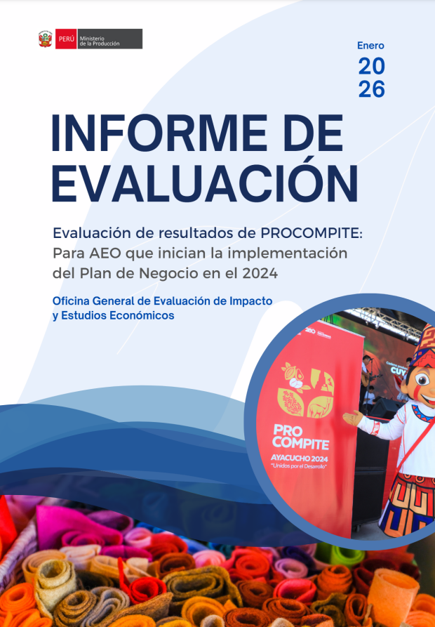 La evaluación de resultados de PROCOMPITE, correspondiente a las AEO que iniciaron la implementación de sus Planes de Negocio en 2024, analiza el desempeño de la estrategia a partir de los criterios del CAD-OCDE, considerando información relevante sobre la gestión, el financiamiento y el desempeño de la estrategia. Durante dicho período, se cofinanciaron 853 planes de negocio en los sectores de manufactura, pesca y turismo. El informe presenta evidencia sobre la pertinencia de la intervención respecto de las cadenas productivas priorizadas, su articulación con otros programas del Sector Producción y el nivel de ejecución presupuestal alcanzado.