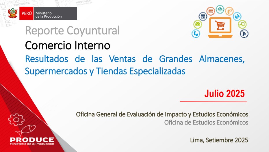 En julio 2025, las ventas del comercio interno experimentaron una leve disminución de 0.6% con relación a julio de 2024. Este resultado se explica principalmente por las menores ventas registradas en las tiendas por departamento, equipamiento del hogar y farmacias, ante una moderación en la demanda de los hogares.