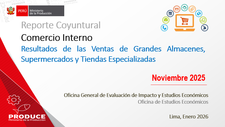 En noviembre del 2025, las ventas del comercio interno registraron un crecimiento significativo de 9.4% con relación a noviembre de 2024. Este desempeño responde principalmente por el aumento de las ventas en supermercados, tiendas por departamento y equipamiento para el hogar, impulsadas en parte por las estrategias comerciales asociadas a los Cyber days y la recuperación de la demanda interna.
